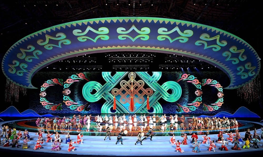 天津年畫、蘇州園林、福建土樓、西藏布達(dá)拉宮……在開幕式的代表團(tuán)入場(chǎng)環(huán)節(jié),各省區(qū)市的人文風(fēng)情和地標(biāo)元素通過剪紙、國潮風(fēng)彩繪等藝術(shù)風(fēng)格展現(xiàn),搭配著《鄂倫春小唱》《美麗的草原我的家》《駿馬奔馳保邊疆》等耳熟能詳?shù)膬?nèi)蒙古音樂,讓觀眾領(lǐng)略到中華民族輝煌璀璨的文化。