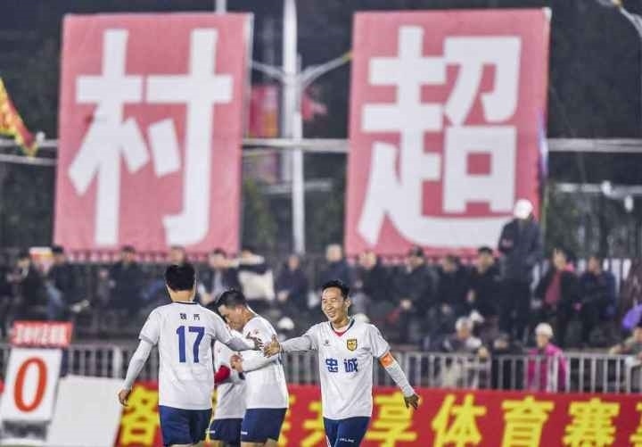 2024年1月7日,“村超”上賽季射手王、忠誠(chéng)村球員董永恒(右)在進(jìn)球后和隊(duì)友慶祝。2024年貴州榕江(三寶侗寨)和美鄉(xiāng)村足球超級(jí)聯(lián)賽(“村超”)新賽季于1月6日在貴州省黔東南苗族侗族自治州榕江縣激情開(kāi)賽。新賽季“村超”參賽隊(duì)伍實(shí)現(xiàn)大幅擴(kuò)容,從20支球隊(duì)增加到62支,共計(jì)將有1800余名球員參與。新華社記者 陶亮 攝
