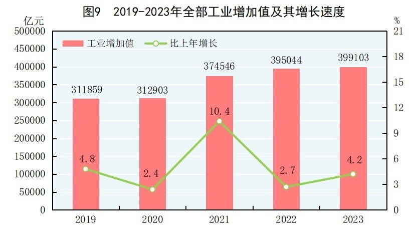 [11]由于統(tǒng)計調(diào)查制度規(guī)定的調(diào)查范圍變動、統(tǒng)計執(zhí)法、剔除重復數(shù)據(jù)等因素,2023年規(guī)模以上工業(yè)相關(guān)指標增速及變化按可比口徑計算。