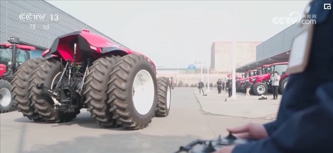 在這個數(shù)字項目區(qū),拖拉機(jī)生產(chǎn)的幾十道工序都在不斷優(yōu)化創(chuàng)新。這個沒有駕駛艙,更沒有駕駛員的拖拉機(jī)可以自由行走,指揮它行動的是一部手持操作面板,這是中國一拖新上線的無人駕駛拖拉機(jī)。