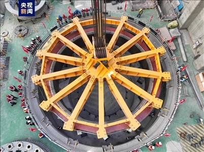 ·青海:黃河上游羊曲水電站1號機(jī)組定子吊裝成功。