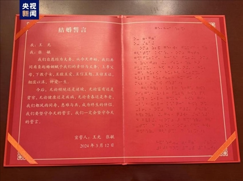 ·我國視障人士首次使用無障礙格式文件完成結婚登記。