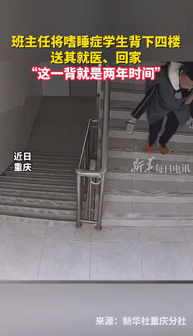 重慶墊江中學初二班里有位留守同學患有“嗜睡癥”,常常一睡不醒。老師們試過捏鼻子、用冷水巾擦臉、輕拍臉頰,多種方式都不奏效,最嚴重時一周會發(fā)作兩三次。每次他一睡不醒時,班主任徐龍軍都會把他從四樓寢室背下來,送他回家或就醫(yī),這一背就是兩年。