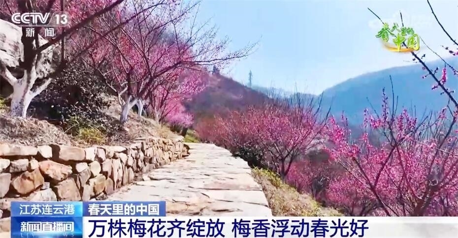 春日暖陽(yáng)中,江蘇連云港花果山漫山遍野的梅花悄然綻放,紅梅花開似海、明媚驚艷,遠(yuǎn)看如云霞燦爛,近聞?dòng)杏浒迪?。花果山梅園經(jīng)過(guò)多年的栽植培育,有紅梅、美人梅、綠萼梅等梅樹2萬(wàn)多株。