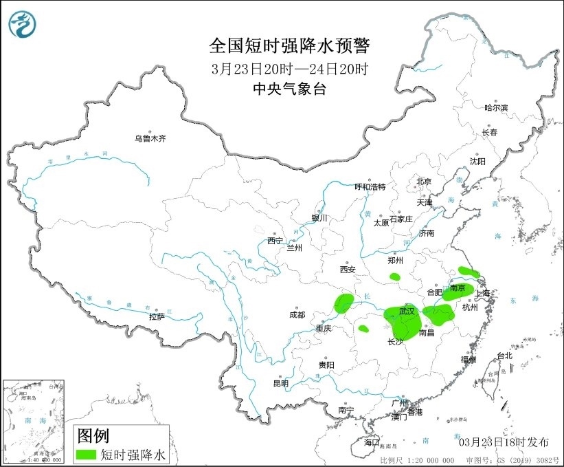 央視網(wǎng)消息:中央氣象臺(tái)3月23日18時(shí)繼續(xù)發(fā)布強(qiáng)對(duì)流天氣藍(lán)色預(yù)警。預(yù)計(jì)3月23日20時(shí)至24日20時(shí),湖北東部、湖南北部、江西北部、重慶東南部、貴州北部等地的部分地區(qū)將有8-10級(jí)雷暴大風(fēng)或冰雹天氣;安徽南部、江蘇南部、湖北東南部、湖南東北部、江西北部、浙江北部、重慶北部等地的部分地區(qū)將有短時(shí)強(qiáng)降水天氣,最大小時(shí)雨量20-40毫米,局地可達(dá)50毫米以上。