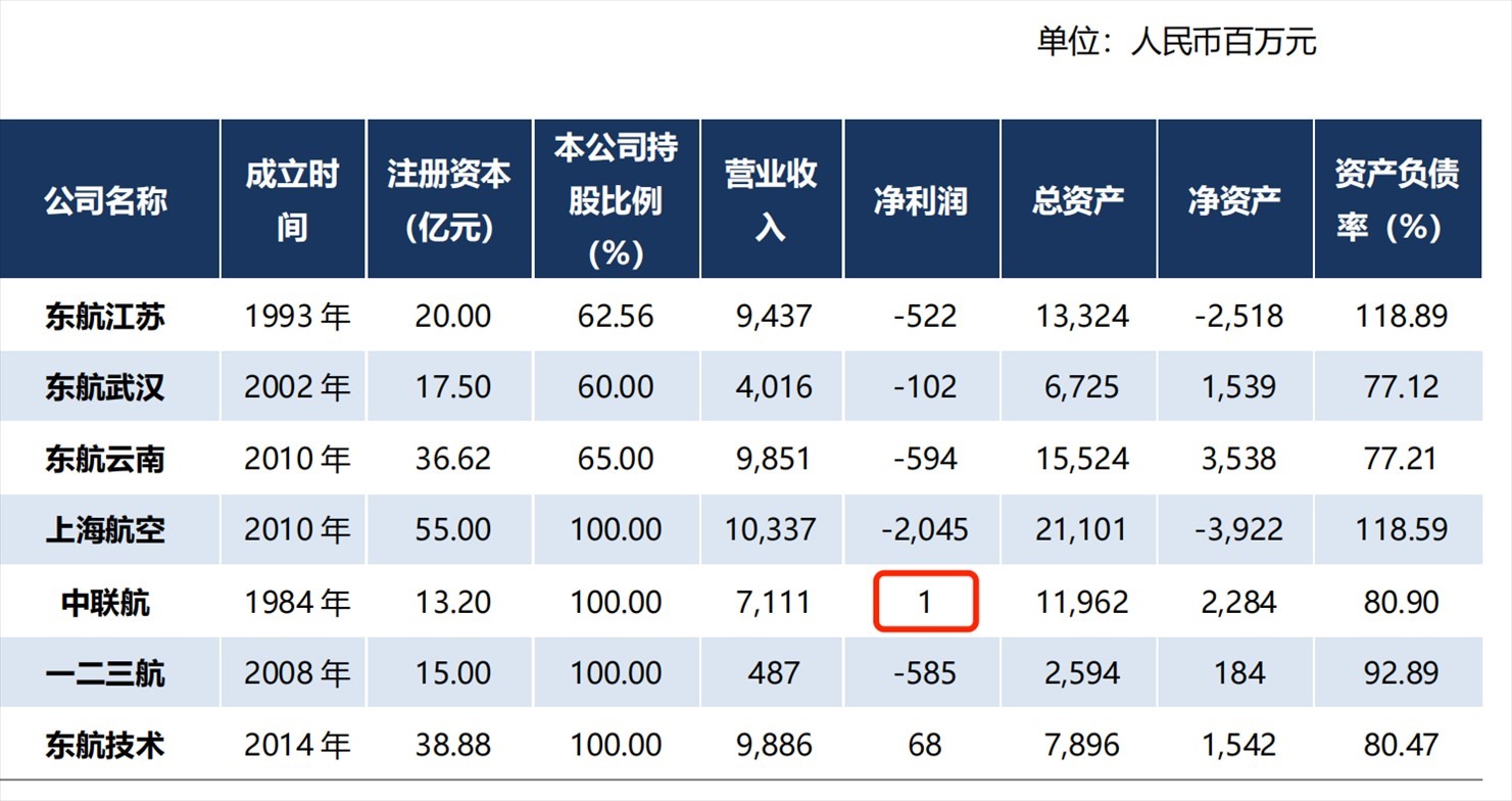 東航與航空主業(yè)相關的子公司、參股公司業(yè)績