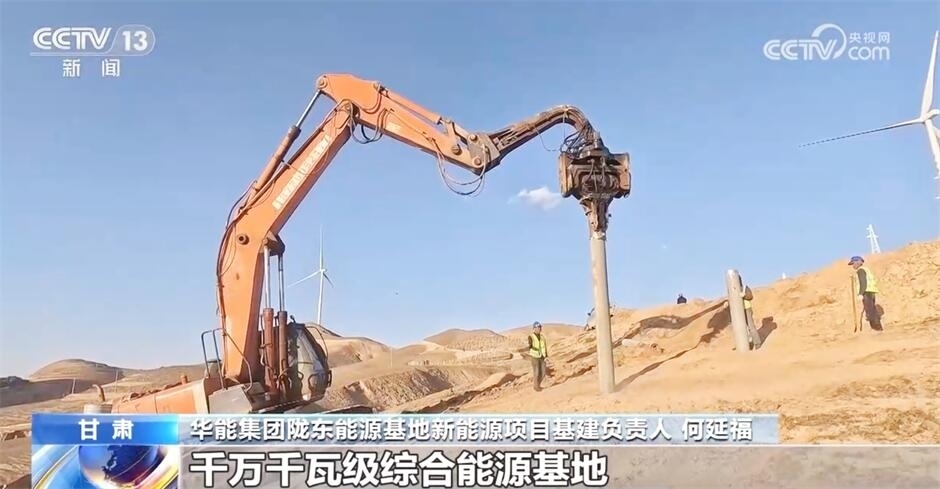 華能集團(tuán)隴東能源基地新能源項(xiàng)目基建負(fù)責(zé)人何延福稱:“我們按照‘風(fēng)光火儲(chǔ)輸一體化’開發(fā),打造‘清潔主導(dǎo)、多能互補(bǔ)’的千萬千瓦級(jí)綜合能源基地,規(guī)劃總裝機(jī)容量1000萬千瓦。”