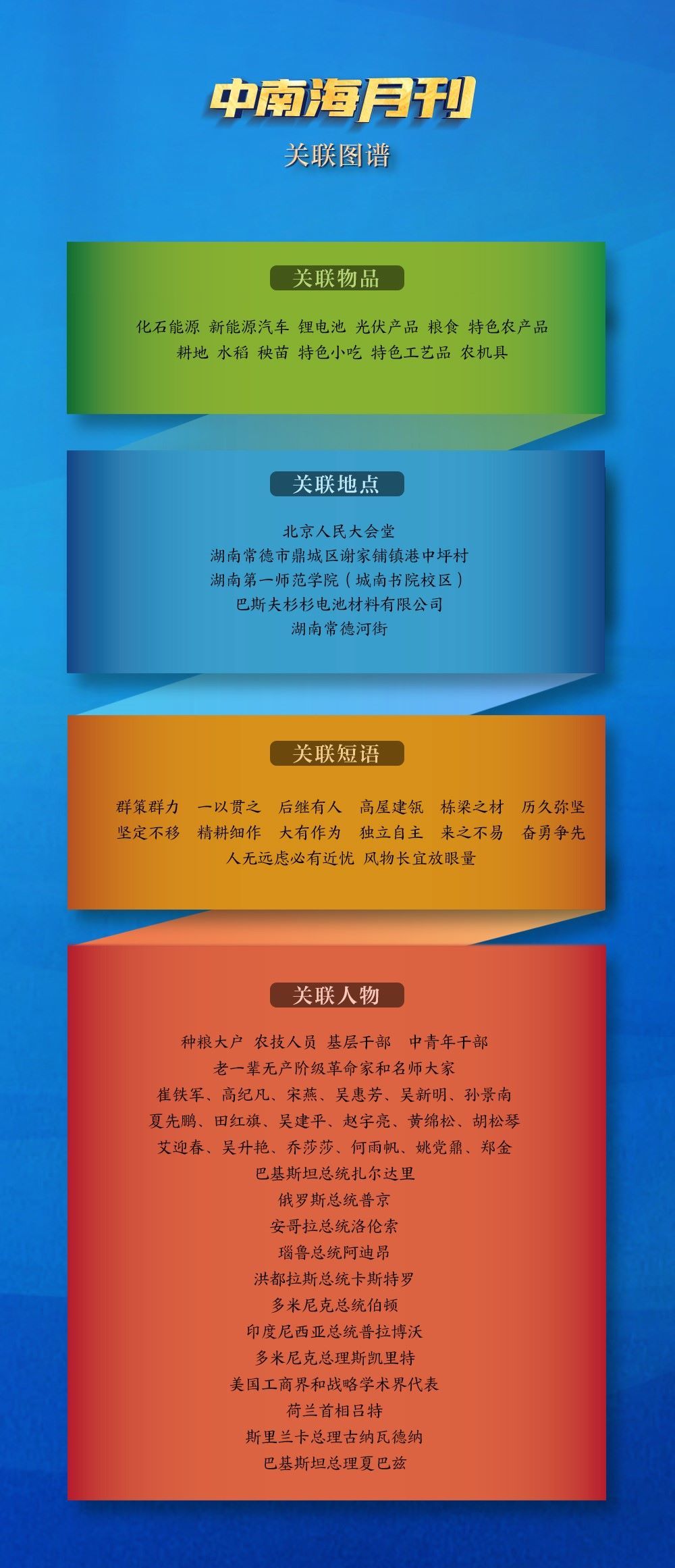 觀察分析央視網(wǎng)“I學(xué)習(xí)”數(shù)據(jù)庫生成的3月關(guān)聯(lián)圖譜,“耕地”“秧苗”“農(nóng)機具”等飽含著總書記對農(nóng)民農(nóng)事的關(guān)心囑托;“后繼有人”“棟梁之材”承載著他對青年一代的殷切期許;“風(fēng)物長宜放眼量”“人無遠慮必有近憂”則蘊含著他對歷史與現(xiàn)實的辯證思考。