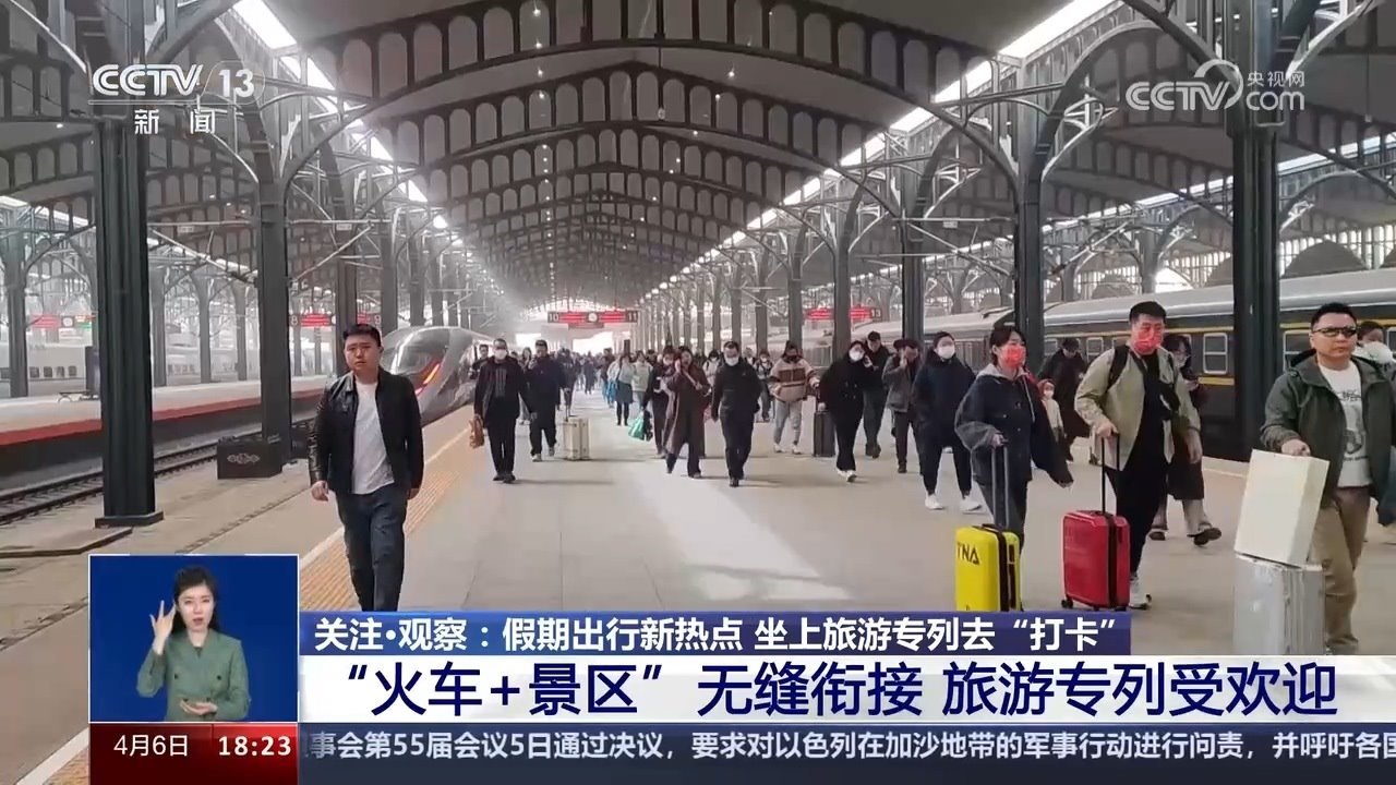 央視網(wǎng)消息:清明春花放,踏青好時(shí)節(jié)。坐著火車去旅行,縱跨千山,橫飛萬水,用速度與激情串聯(lián)美景。今年清明假期第一天也就是4月4日,全國(guó)鐵路發(fā)送旅客1853.6萬人次,創(chuàng)今年以來單日旅客發(fā)送量新高。以網(wǎng)紅城市、網(wǎng)紅景區(qū)為目的地的客流增幅明顯,各地增開的臨客列車也瞄準(zhǔn)了游客“打卡地”。坐上旅游專列去旅行,可以給移步換景的美好出游心愿帶來多少種可能呢?進(jìn)入今天的關(guān)注觀察。