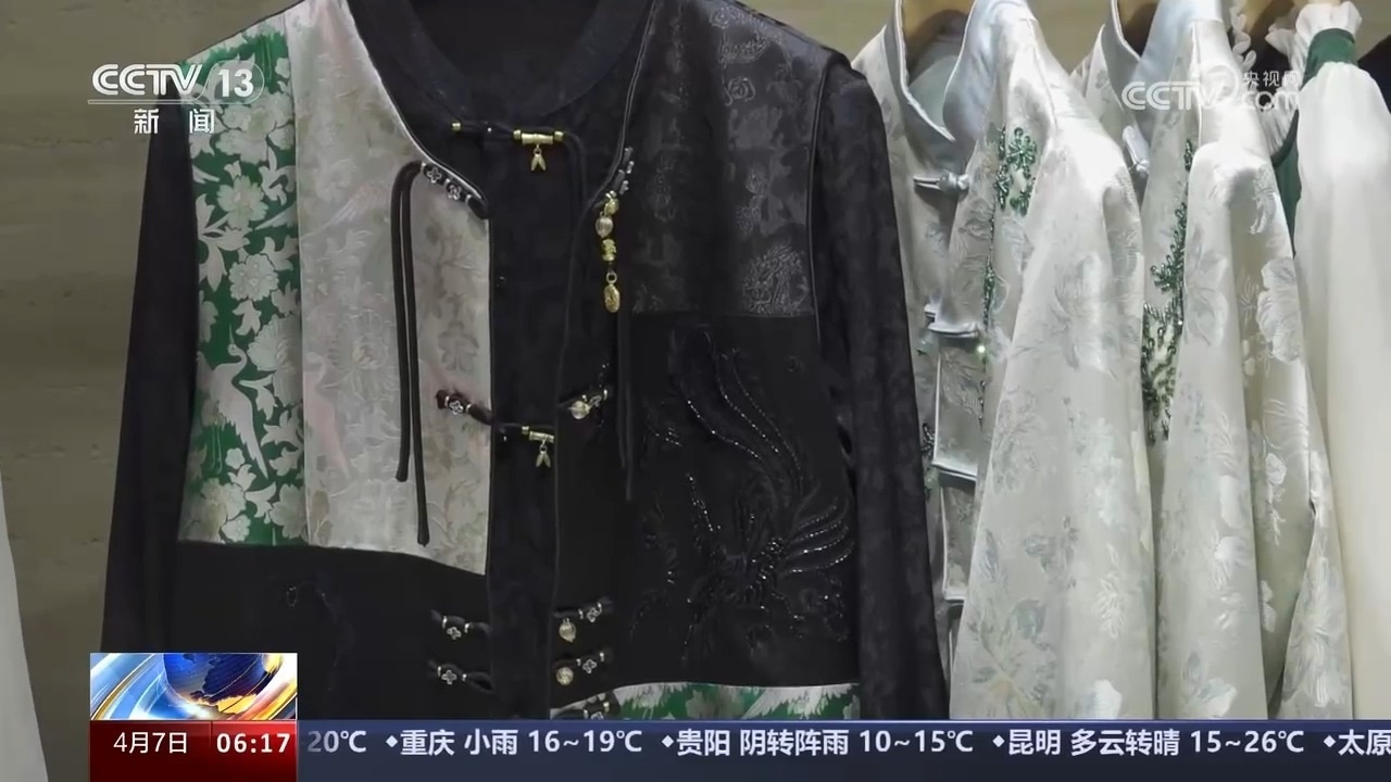 緞子坎肩疊穿帽衫,宋錦外套搭配牛仔褲,刺繡襯衫配馬面裙,記者走訪各地發(fā)現(xiàn),新中式成為春夏服飾穿搭的流行密碼。