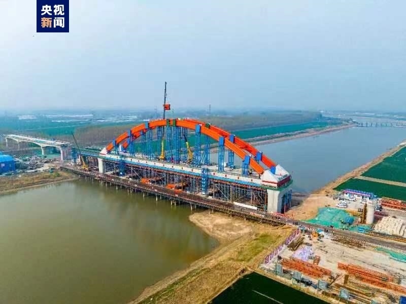 4月10日,濟濱高鐵全線首個系桿拱橋——濟商1號特大橋跨徒駭河144米系桿拱順利合龍,為下一步系桿拱橋梁施工、鋪軌奠定了堅實基礎。