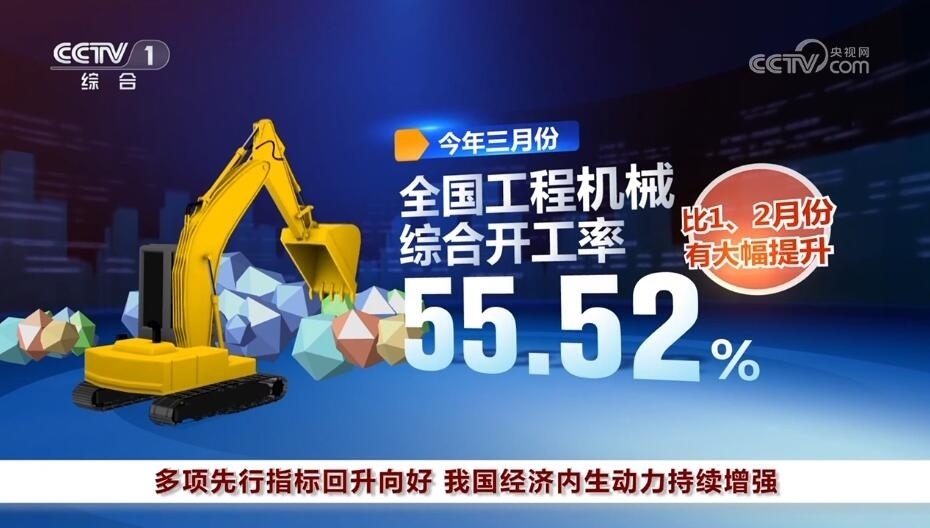 3月份,基礎(chǔ)設(shè)施建設(shè)及重大工程進度加快。挖掘機大數(shù)據(jù)顯示,全國工程機械綜合開工率達到55.52%,比1、2月份大幅提升。