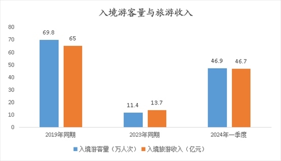 記者今天(4月19日)從北京市文化和旅游局了解到,北京市一季度接待入境游客46.9萬(wàn)人次,同比增長(zhǎng)3.1倍,恢復(fù)到2019年的67.2%;實(shí)現(xiàn)旅游外匯收入6.5億美元,同比增長(zhǎng)225.8%,恢復(fù)到2019年的67.4%(折合人民幣46.7億元,增長(zhǎng)240.0%,恢復(fù)到2019年的71.9%)。