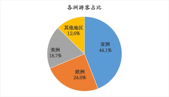 一、近程市場(chǎng)恢復(fù)良好。港澳臺(tái)地區(qū)游客恢復(fù)速度較快,合計(jì)為9.5萬(wàn)人次,恢復(fù)到2019年的80.1%。游客占比方面,亞洲游客(不包括港澳臺(tái)地區(qū))占比為44.1%,較2019年提升7.2個(gè)百分點(diǎn),東南亞地區(qū)游客恢復(fù)情況最好,其中主要客源國(guó)為馬來(lái)西亞、泰國(guó)、新加坡。
