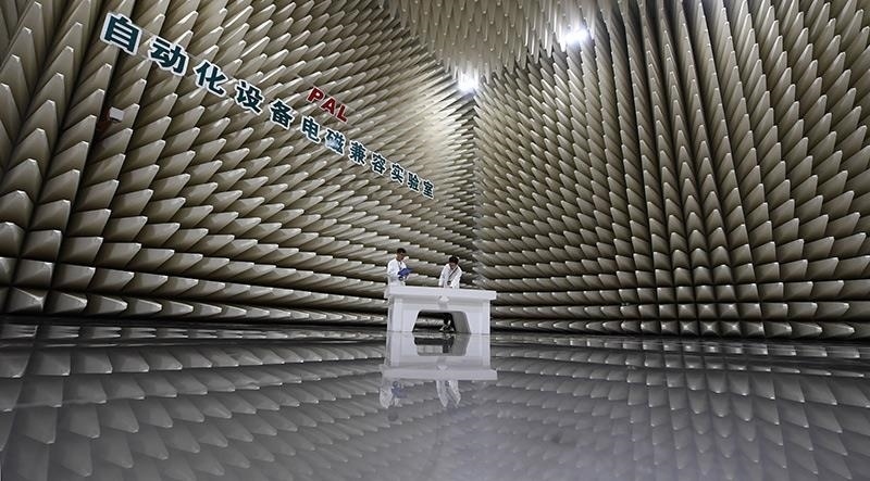 2023年7月7日,在南瑞集團有限公司自動化設備電磁兼容實驗室,科研人員在進行輻射發(fā)射實驗準備工作。