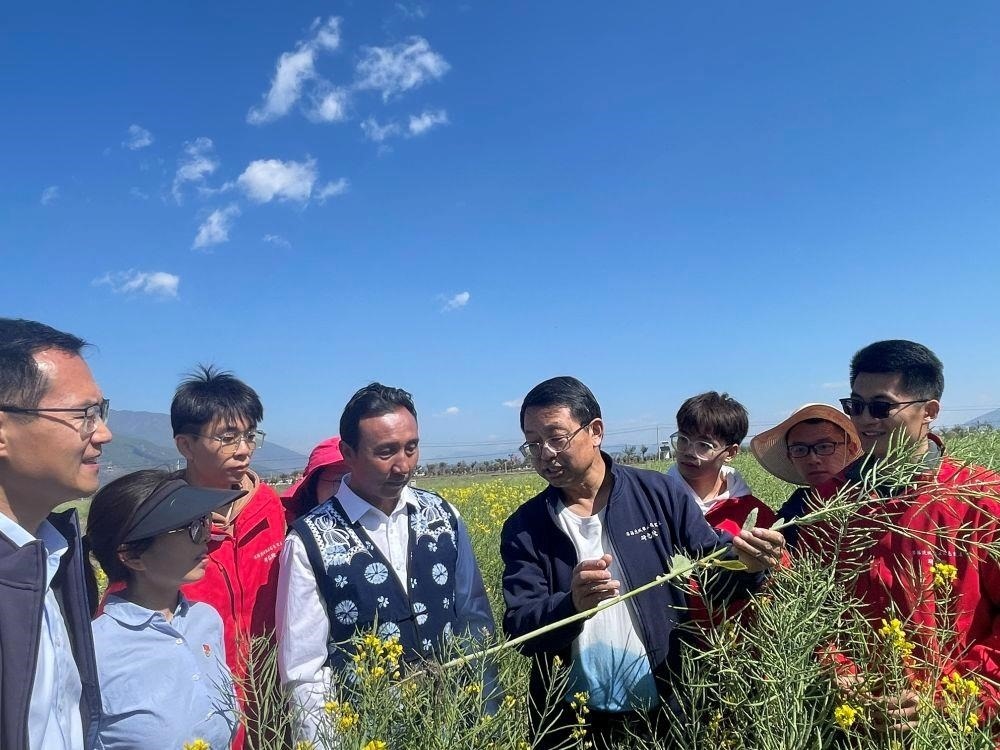 中國農業(yè)大學教授張福鎖(右四)帶領科技小院師生與農戶交流種植心得。