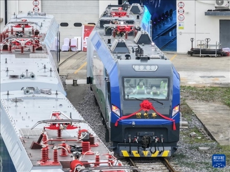 國內(nèi)首臺(tái)新型智能重載電力機(jī)車在湖南株洲下線。