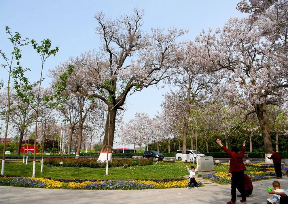 2024年4月16日,人們?cè)诮乖5摳刹繉W(xué)院門(mén)口的“焦桐”廣場(chǎng)參觀游玩。新華社記者 郝源 攝