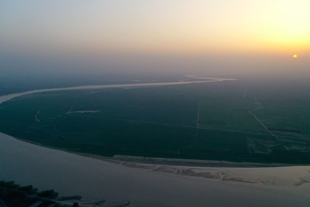 這是2024年4月17日在河南省蘭考縣黃河灣風(fēng)景區(qū)拍攝的黃河(無(wú)人機(jī)照片)。新華社記者 郝源 攝