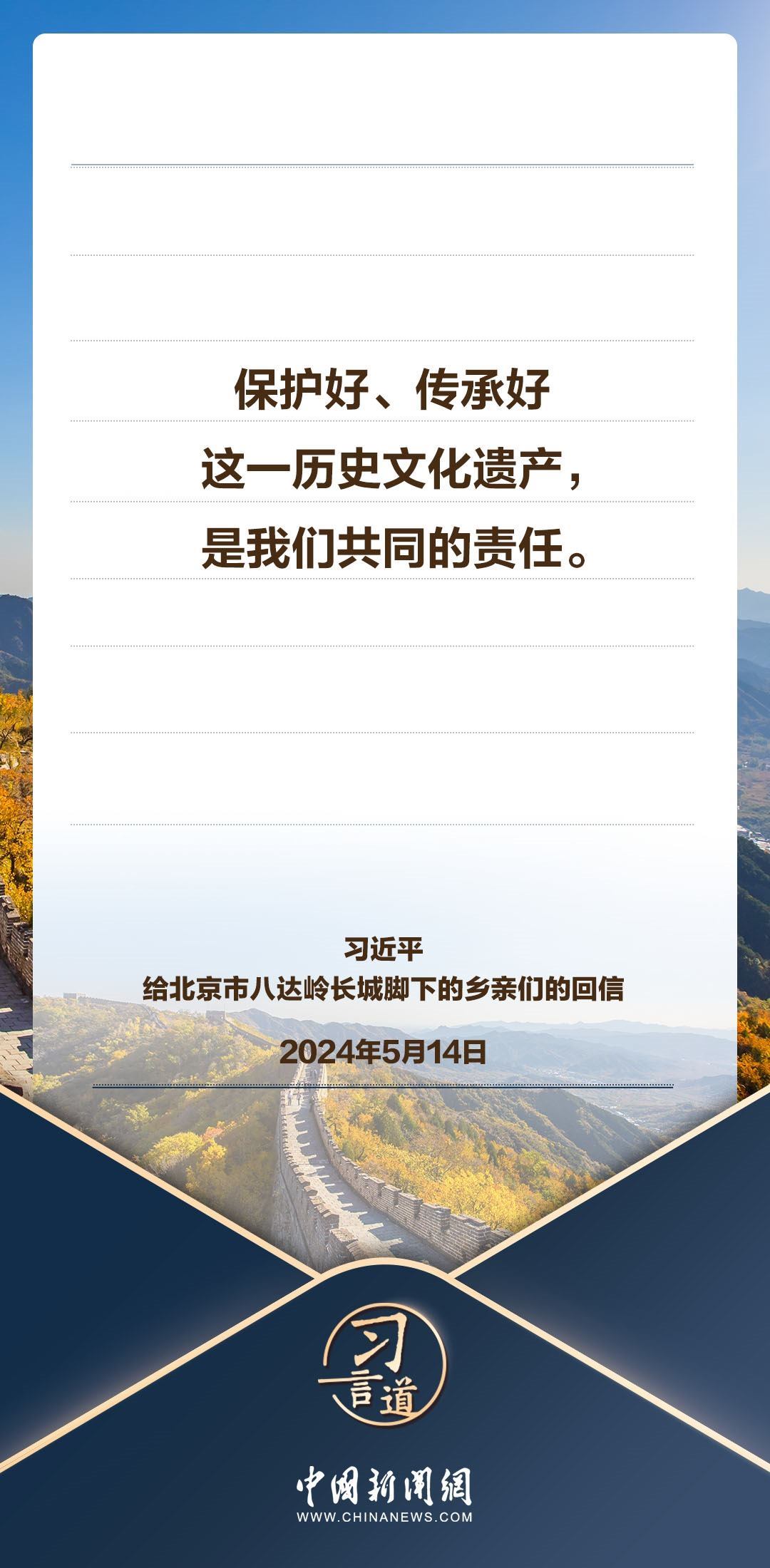 中共中央總書記、國家主席、中央軍委主席習(xí)近平5月14日給北京市延慶區(qū)八達(dá)嶺鎮(zhèn)石峽村的鄉(xiāng)親們回信,向他們致以誠摯問候并提出殷切期望。習(xí)近平指出——