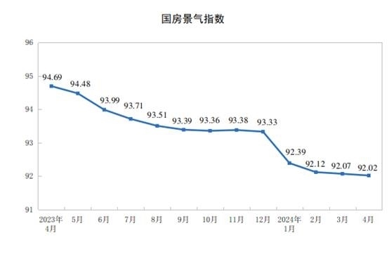 4月份,房地產開發(fā)景氣指數(簡稱“國房景氣指數”)為92.02。
