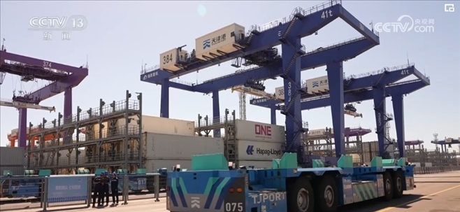 天津港北疆港區(qū)的“智慧碼頭”采用自動化作業(yè),貨物從裝卸、轉運、堆放,全部通過人工智能實現(xiàn)。作為全球首個“智慧零碳”碼頭,這里每年的吞吐量高達200萬標箱。