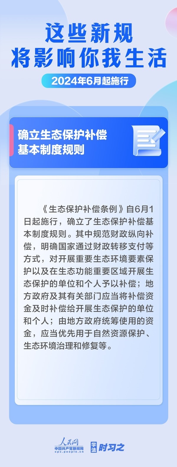 ? ? 保障糧食有效供給;確立生態(tài)保護(hù)補(bǔ)償基本制度規(guī)則;規(guī)范保障海警機(jī)構(gòu)依法履職……6月起,這些新規(guī)施行,將影響你我生活。