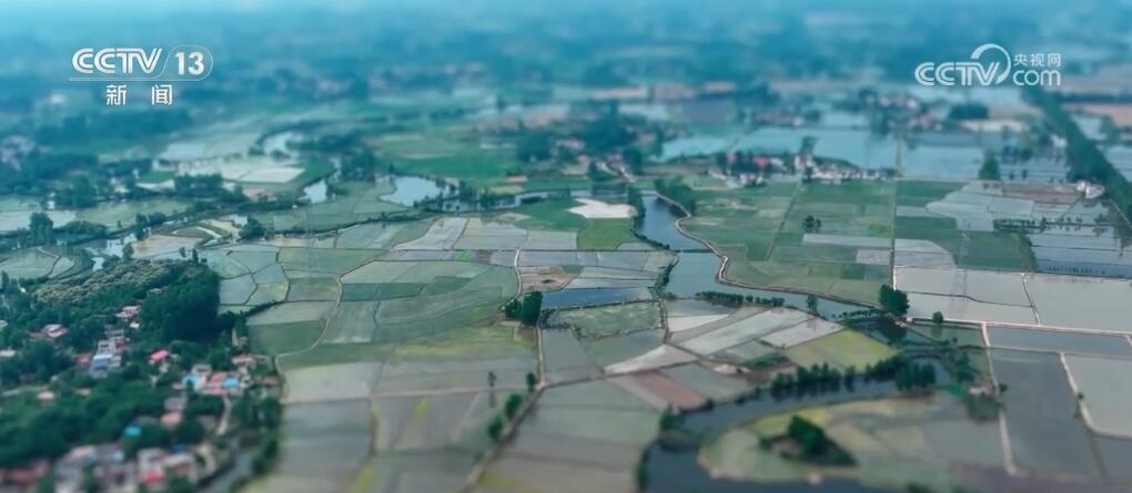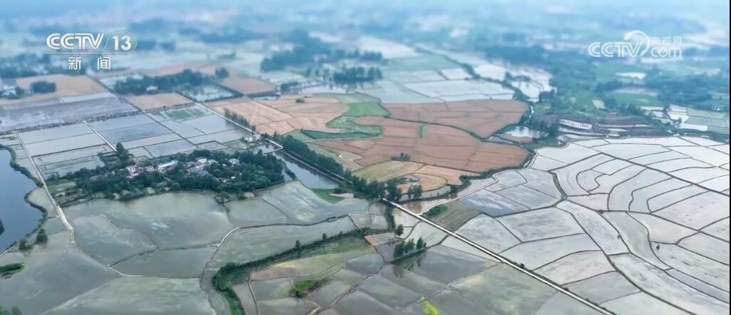 現(xiàn)在您看到的是河南信陽(yáng)淮河以南的水稻插秧現(xiàn)場(chǎng)。插秧機(jī)在田間穿梭,一株株茁壯的秧苗被整齊有序地植入田間,一會(huì)兒工夫就插滿了整塊稻田??罩懈╊?,一臺(tái)臺(tái)插秧機(jī)在農(nóng)機(jī)手的操控下好似一把把畫(huà)刷,在稻田上輕輕暈染,繪就丹青。而同在信陽(yáng),淮河以北的麥田里,則是金色的麥浪翻滾起伏,收割機(jī)馳騁田間,飽滿的麥穗被卷入機(jī)艙,經(jīng)過(guò)收割、脫粒,顆粒歸倉(cāng)。