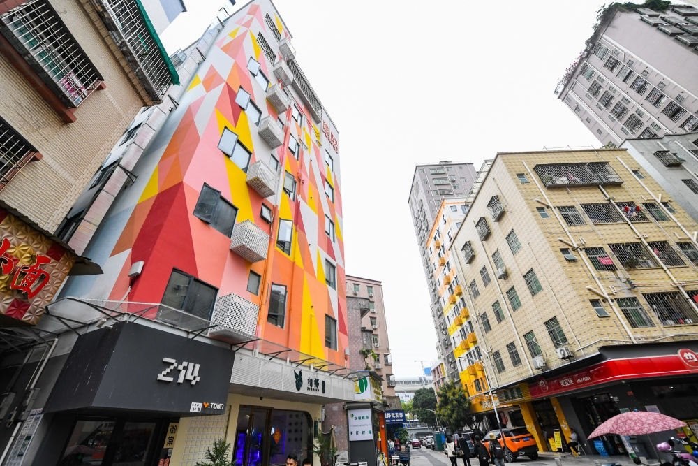 2023年4月2日在深圳市龍華區(qū)元芬村拍攝的改造后的青年公寓外立面(左)。近年來,深圳持續(xù)推進(jìn)城中村住房規(guī)?;焚|(zhì)化改造提升,打造了元芬村等新型宜居人文社區(qū)。新華社記者 毛思倩 攝