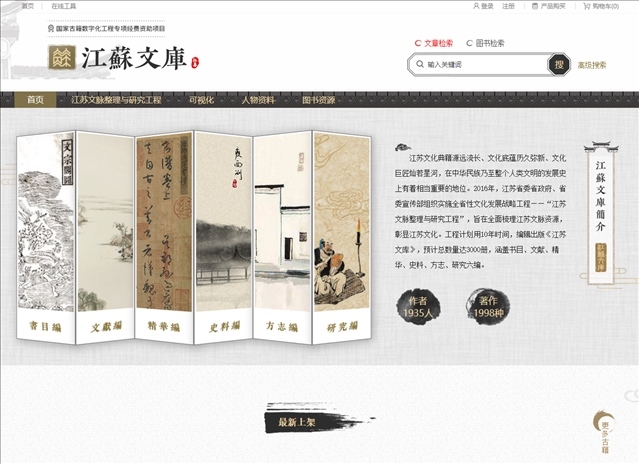 △《江蘇文庫(kù)》數(shù)據(jù)庫(kù)軟件平臺(tái)首頁截圖