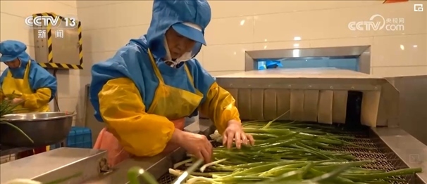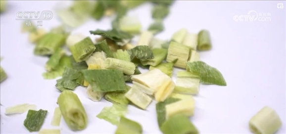 香蔥被運輸?shù)疆數(shù)氐募庸S后,經(jīng)過洗、理、切、分揀裝盤,然后就開始了高科技的“蛻變”之旅。工人先把香蔥放入冷庫冷凍數(shù)小時,然后立即抽真空“升華”干燥,經(jīng)過48小時左右的一系列工序后,一棵香蔥就變成了脫水蔬菜。留學(xué)回國創(chuàng)業(yè)的王一盛介紹,與過去使用的熱風(fēng)干燥技術(shù)相比,這種新技術(shù)不僅讓垛田香蔥最大程度鎖鮮,價格也比過去增加了五六倍。