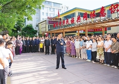 傍晚時(shí)分,社區(qū)廣場(chǎng)十分熱鬧,居民們看見總書記來(lái)了,紛紛圍攏過(guò)來(lái),熱烈鼓掌歡迎。習(xí)近平親切地對(duì)大家說(shuō),時(shí)隔4年,我再次來(lái)寧夏看望各族干部群眾,見到大家非常高興!中華民族是一個(gè)大家庭,各族人民要像石榴籽一樣緊緊抱在一起。要不斷鑄牢中華民族共同體意識(shí),把各族人民的心緊緊連在一起,把各方面的力量廣泛凝聚到一起,共同推進(jìn)中國(guó)式現(xiàn)代化,共襄中華民族偉大復(fù)興的盛舉。