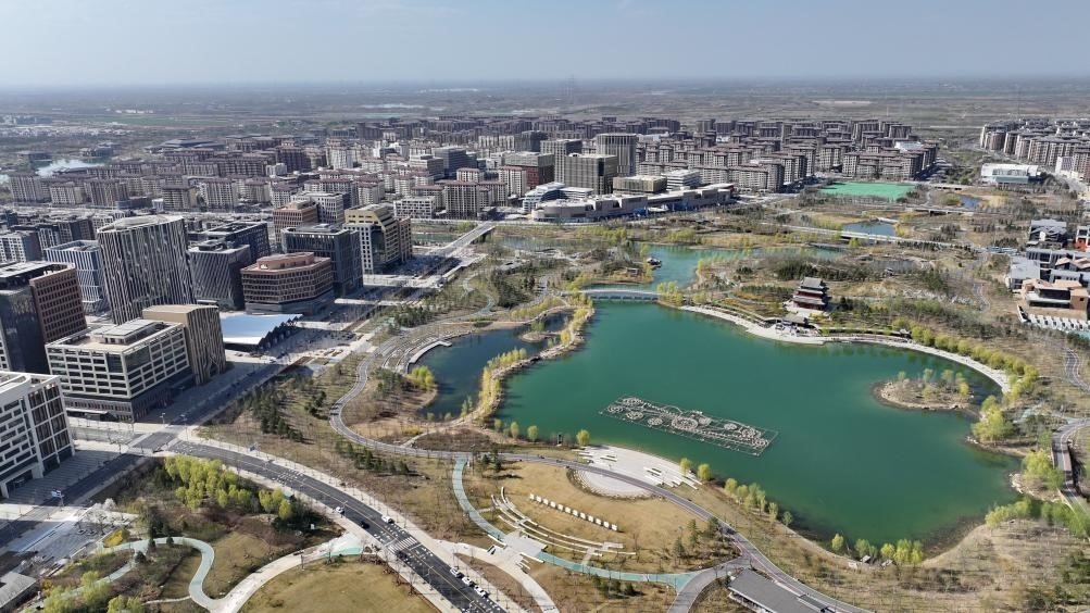 這是雄安新區(qū)金湖公園(2024年3月29日攝,無人機(jī)照片)。新華社記者 牟宇 攝