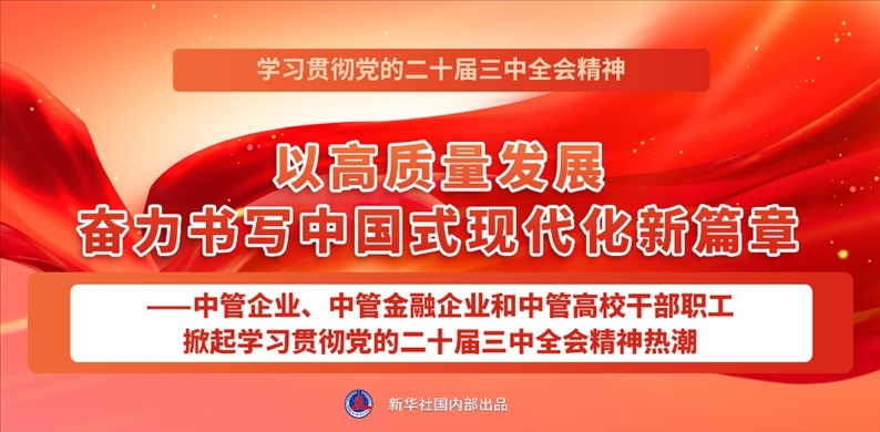 點(diǎn)擊標(biāo)題看詳情:以高質(zhì)量發(fā)展奮力書寫中國式現(xiàn)代化新篇章——中管企業(yè)、中管金融企業(yè)和中管高校干部職工掀起學(xué)習(xí)貫徹黨的二十屆三中全會精神熱潮