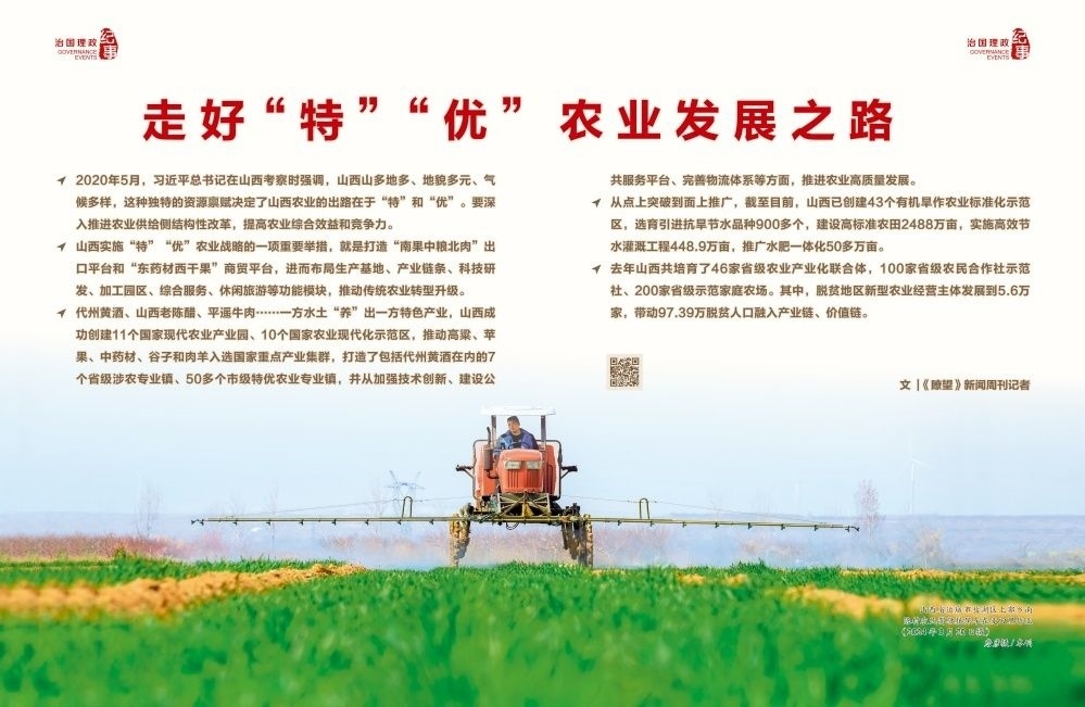 2020年5月,習近平總書記在山西考察時強調,山西山多地多、地貌多元、氣候多樣,這種獨特的資源稟賦決定了山西農業(yè)的出路在于“特”和“優(yōu)”。要深入推進農業(yè)供給側結構性改革,提高農業(yè)綜合效益和競爭力。