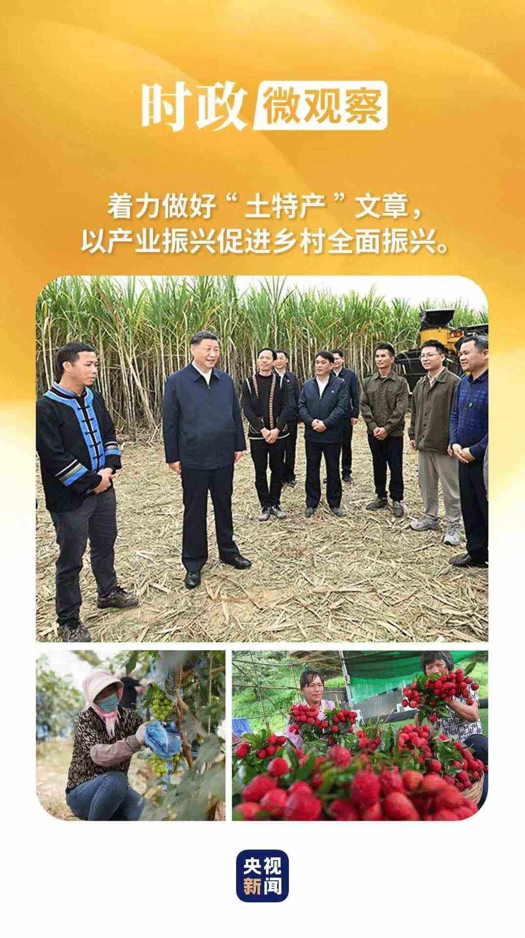 習(xí)近平總書記強(qiáng)調(diào),要著力做好“土特產(chǎn)”文章,以產(chǎn)業(yè)振興促進(jìn)鄉(xiāng)村全面振興。在地方考察時(shí),他多次來(lái)到大棚里、田埂上、果樹間、農(nóng)舍前,為特色產(chǎn)業(yè)謀思路、為農(nóng)民致富找門路。