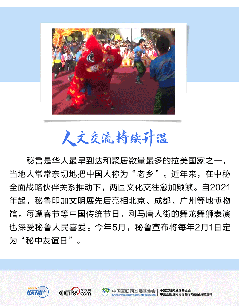 近年來,在雙方共同努力下,中秘各領(lǐng)域合作取得豐碩成果,中秘這對(duì)跨洋“友鄰”的“距離”越來越近。央視網(wǎng)《聯(lián)播+》特推出長(zhǎng)圖,與您一同了解。