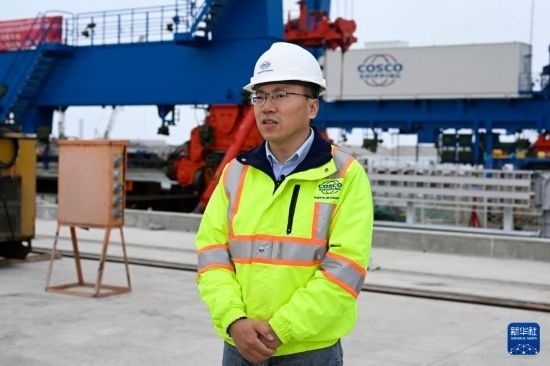 6月21日,在秘魯錢(qián)凱港,中遠(yuǎn)海運(yùn)港口秘魯錢(qián)凱公司常務(wù)副總經(jīng)理何波接受新華社記者采訪。 新華社記者 李木子 攝