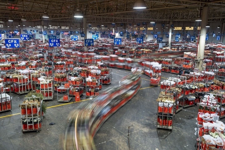 2023年1月31日,臺(tái)車在昆明國際花卉拍賣交易中心運(yùn)輸鮮花。新華社記者 陳欣波 攝