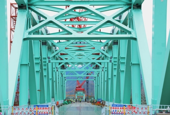 2024年9月5日,工人在川青鐵路重點(diǎn)工程尖扎黃河特大橋現(xiàn)場(chǎng)施工。川青鐵路是我國“八縱八橫”高速鐵路縱向主通道蘭(西)廣通道的重要組成部分。新華社記者 王浡 攝