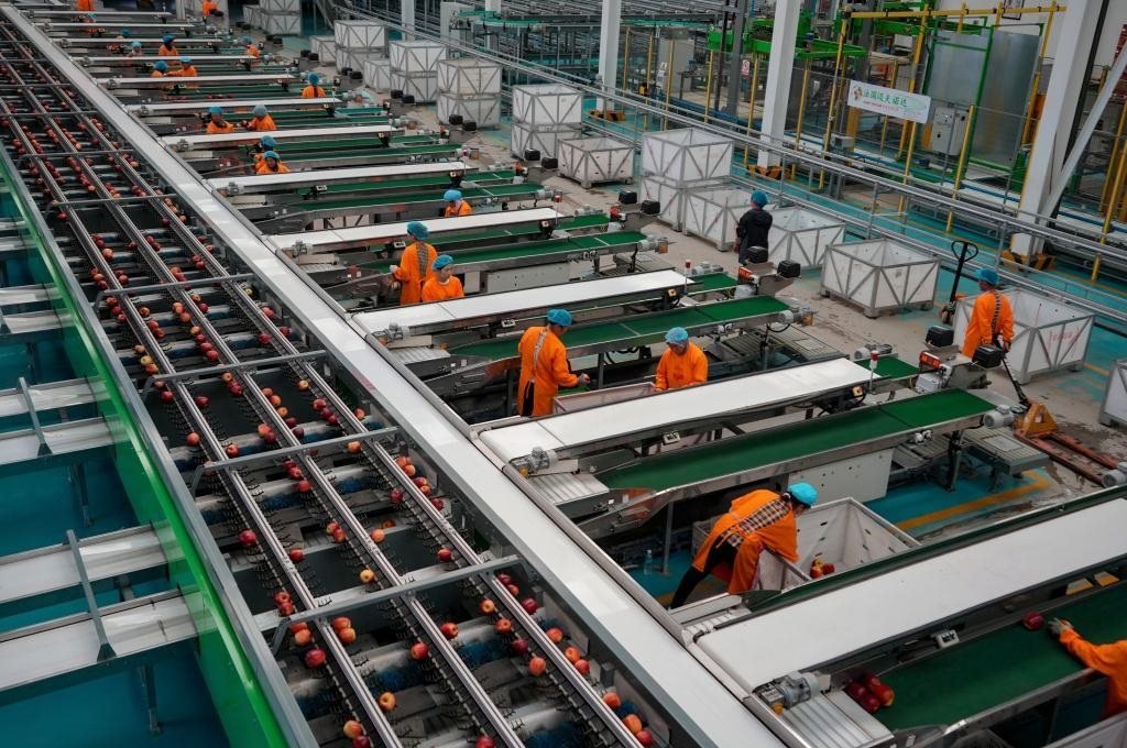 9月29日,工作人員在昭通市超越蘋果基地蘋果分選線上工作。金秋時節(jié),位于烏蒙山區(qū)的云南省昭通市迎來了蘋果豐收季。近年來,昭通市大力發(fā)展蘋果產業(yè),將其作為鞏固拓展脫貧攻堅成果、推進鄉(xiāng)村振興的重要支柱產業(yè)。2023年,全市蘋果綜合產值達到130億元,蘋果成為了群眾的增收致富果。新華社記者陳欣波攝