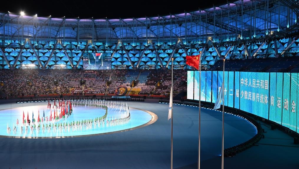 30日晚,第十二屆全國少數民族傳統體育運動會(以下簡稱“運動會”)在三亞市體育中心舉行閉幕式。全部比賽已在29日結束。過去的9天,56個民族歡聚一堂,訴說手足之情,唱響團結之歌。本屆運動會共設競賽項目18項149個小項、表演項目三大類170個小項。近7000名各族運動員團結拼搏、友好互助,在競賽和聯歡中加深情誼,寫下共赴美好生活的新篇章。