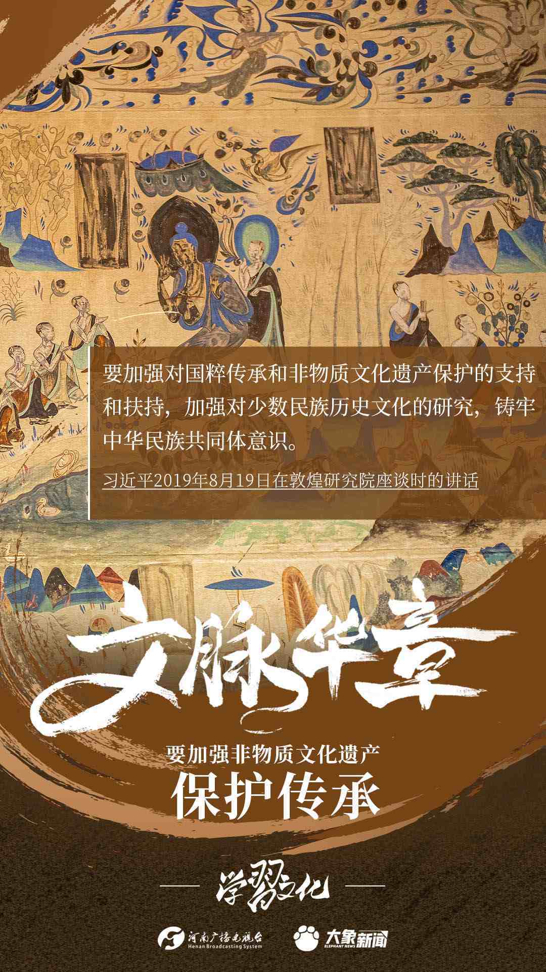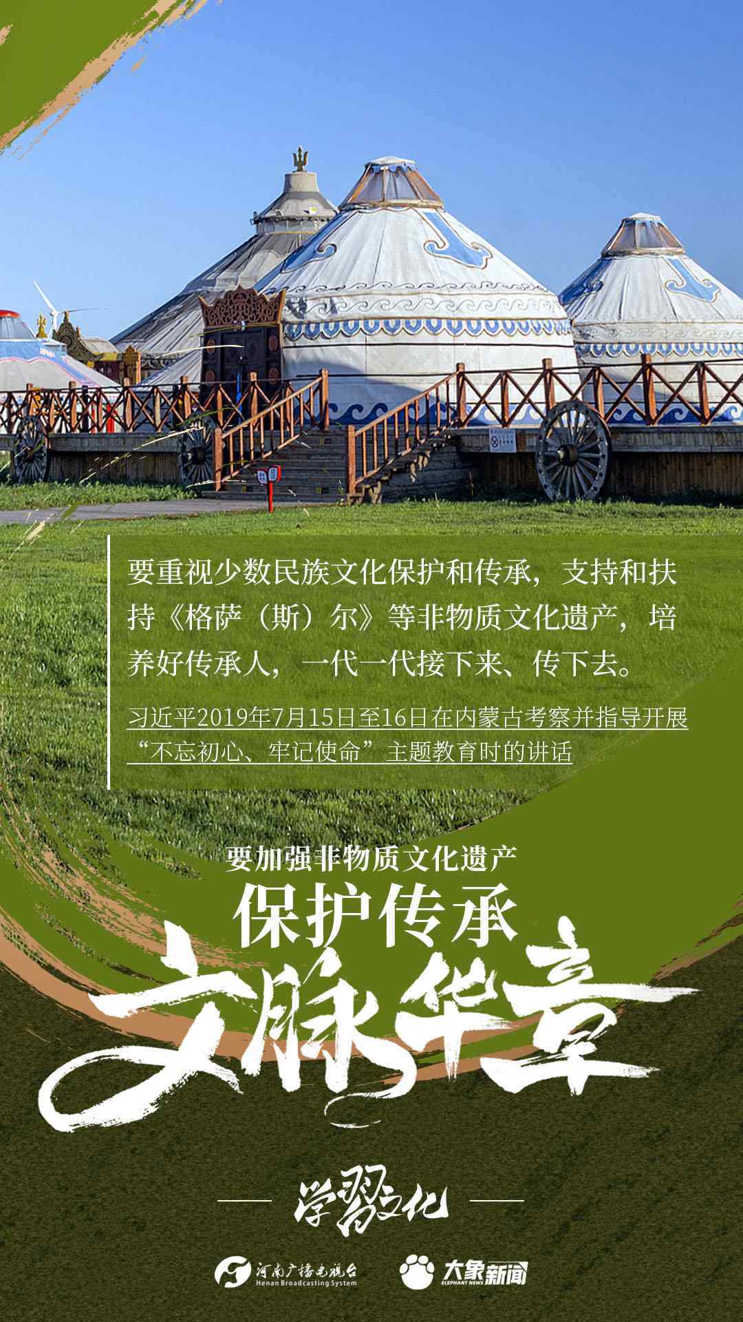 非物質(zhì)文化遺產(chǎn)是中華優(yōu)秀傳統(tǒng)文化的重要組成部分,是中華文明綿延傳承的生動見證,是我國各族人民寶貴的精神財富。習近平總書記十分關(guān)心非物質(zhì)文化遺產(chǎn)的保護傳承,多次強調(diào)“要扎實做好非物質(zhì)文化遺產(chǎn)的系統(tǒng)性保護”“培養(yǎng)好傳承人”等。大象新聞為您梳理,邀您一起學習、領(lǐng)悟、踐行。