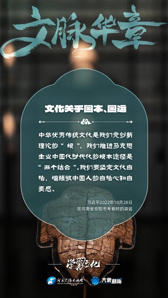 習(xí)近平總書(shū)記高度重視文化之于國(guó)家、之于民族的重大意義,強(qiáng)調(diào):文化是一個(gè)國(guó)家、一個(gè)民族的靈魂。文化興國(guó)運(yùn)興,文化強(qiáng)民族強(qiáng)。沒(méi)有高度的文化自信,沒(méi)有文化的繁榮興盛,就沒(méi)有中華民族偉大復(fù)興。大象新聞梳理了習(xí)近平總書(shū)記的系列重要論述,我們一起學(xué)習(xí)。