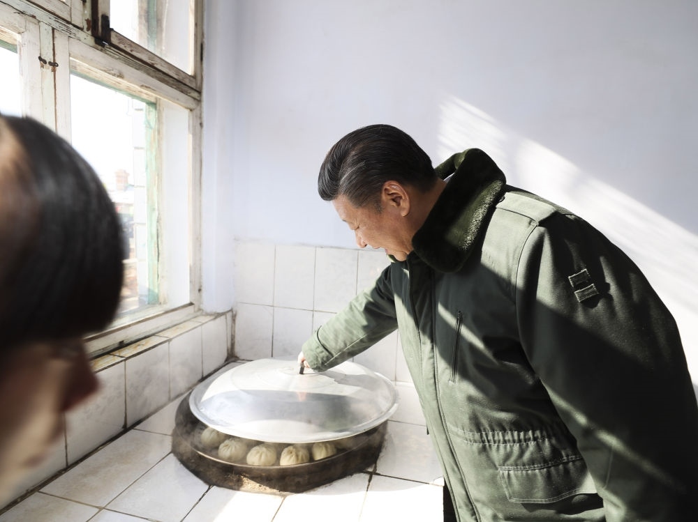 2020年春節(jié)前,習(xí)近平總書記走進(jìn)李發(fā)順家,同鄉(xiāng)親們圍坐在一起聊家常。李發(fā)順邀請總書記一起制作大米粑粑。