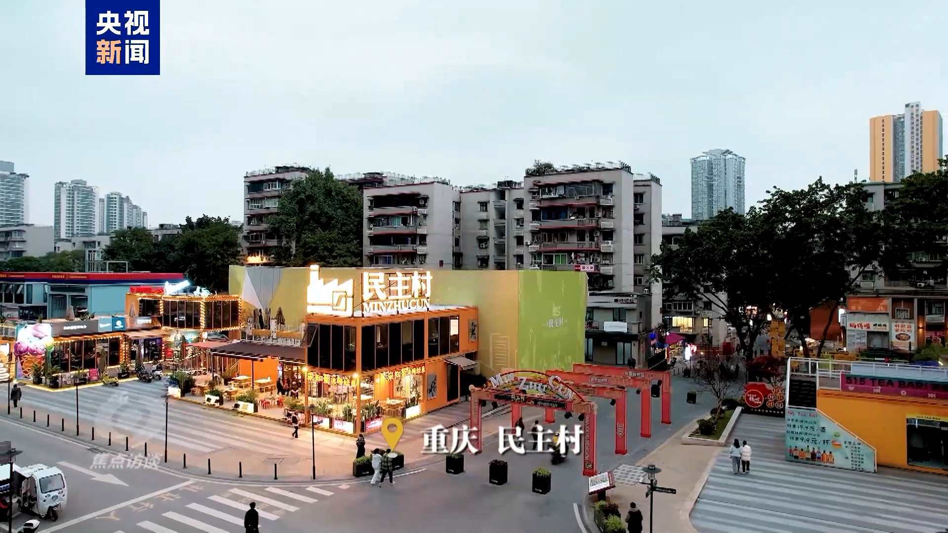 2025年的蛇年春節(jié),是重慶市九龍坡區(qū)民主村社區(qū)更新亮相后迎來的第二個春節(jié),這里聚滿人間煙火,像極了記者記憶中“過年趕場”的畫面。穿過牌坊走進社區(qū),火鍋店、手工藝品、小吃店、咖啡館等各種小攤一字排開,來自四面八方的人們走走停?!肮涑怨涑浴?。