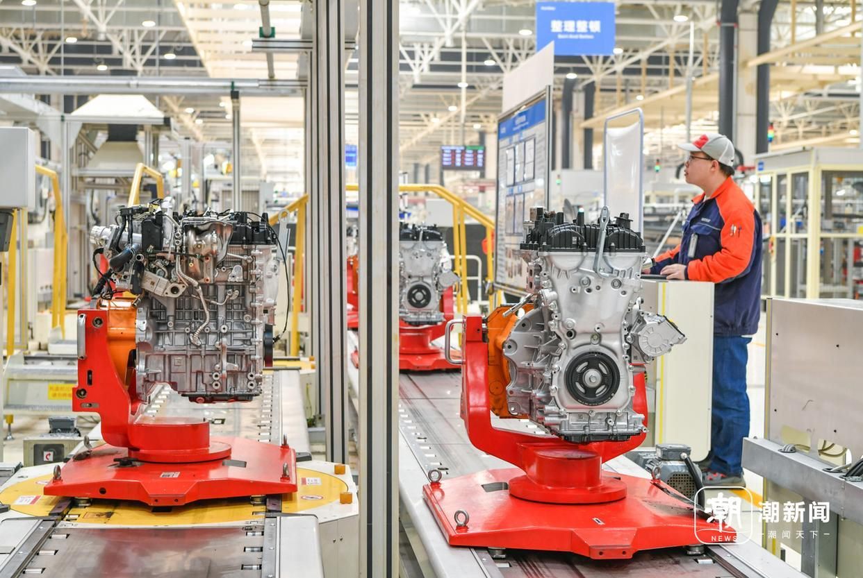 義烏吉利發(fā)動機工廠的生產車間內,技術工人在智能化裝配流水線上趕制油電混動汽車發(fā)動機的生產訂單。記者 金思成 通訊員 時寬兵 攝