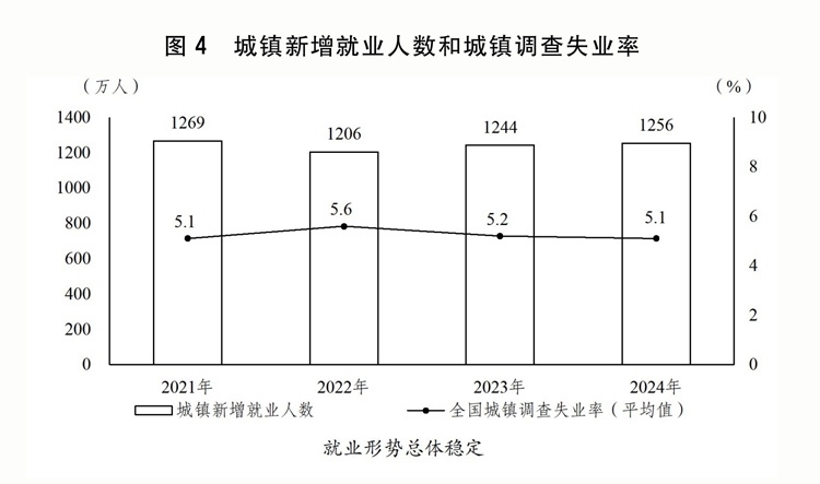 一是穩(wěn)就業(yè)促增收取得積極成效。出臺(tái)實(shí)施就業(yè)優(yōu)先戰(zhàn)略促進(jìn)高質(zhì)量充分就業(yè)的意見。延續(xù)實(shí)施失業(yè)保險(xiǎn)援企穩(wěn)崗政策,優(yōu)化整合吸納就業(yè)補(bǔ)貼和擴(kuò)崗補(bǔ)助。強(qiáng)化高校畢業(yè)生、脫貧人口、農(nóng)民工以及就業(yè)困難人員等就業(yè)幫扶。實(shí)施高校畢業(yè)生等青年就業(yè)服務(wù)攻堅(jiān)行動(dòng)、先進(jìn)制造業(yè)促就業(yè)行動(dòng)和百萬就業(yè)見習(xí)崗位募集計(jì)劃,構(gòu)建高校畢業(yè)生高質(zhì)量就業(yè)服務(wù)體系。加大力度支持公共實(shí)訓(xùn)基地建設(shè),持續(xù)做好重點(diǎn)人群技能培訓(xùn)。做好退役軍人就業(yè)服務(wù)保障,提高優(yōu)撫補(bǔ)助標(biāo)準(zhǔn)。城鎮(zhèn)新增就業(yè)1256萬人,城鎮(zhèn)調(diào)查失業(yè)率平均為5.1%。全國(guó)居民人均可支配收入實(shí)際增長(zhǎng)5.1%。城鄉(xiāng)居民人均可支配收入比為2.34,城鄉(xiāng)居民收入相對(duì)差距繼續(xù)縮小。指導(dǎo)地方上調(diào)最低工資標(biāo)準(zhǔn)。向困難群眾發(fā)放一次性生活補(bǔ)助,惠及1100多萬人。