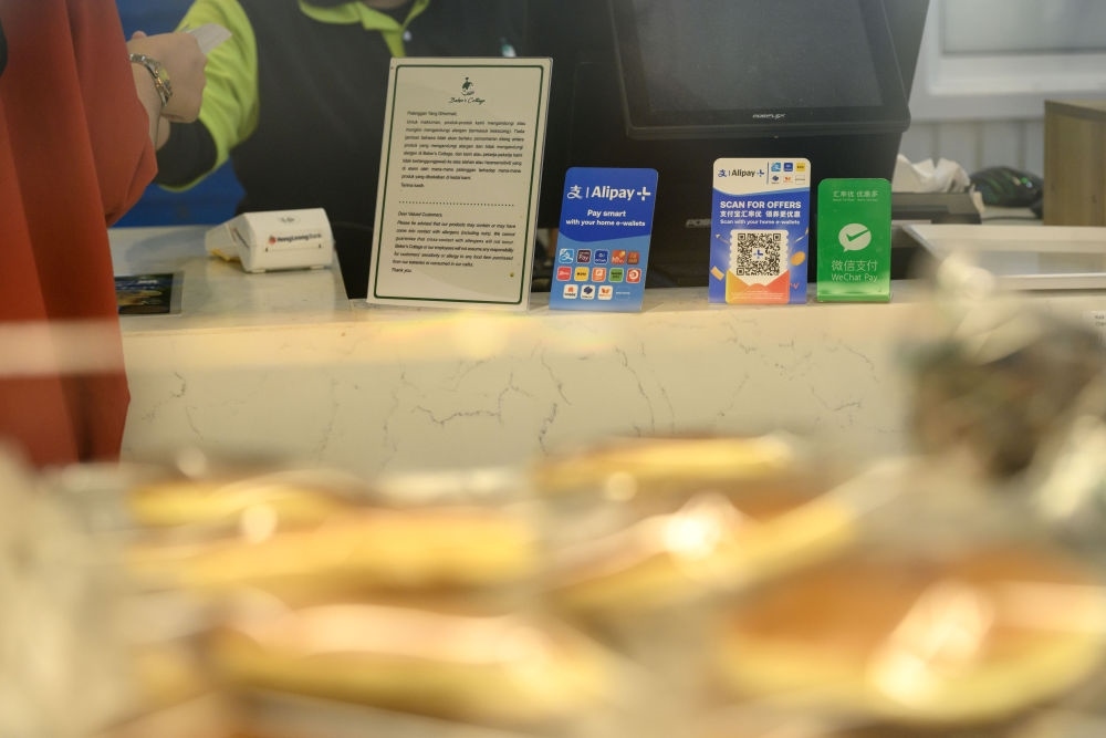 2025年4月10日,在馬來西亞吉隆坡,中國(guó)游客通過微信支付購(gòu)買商品。