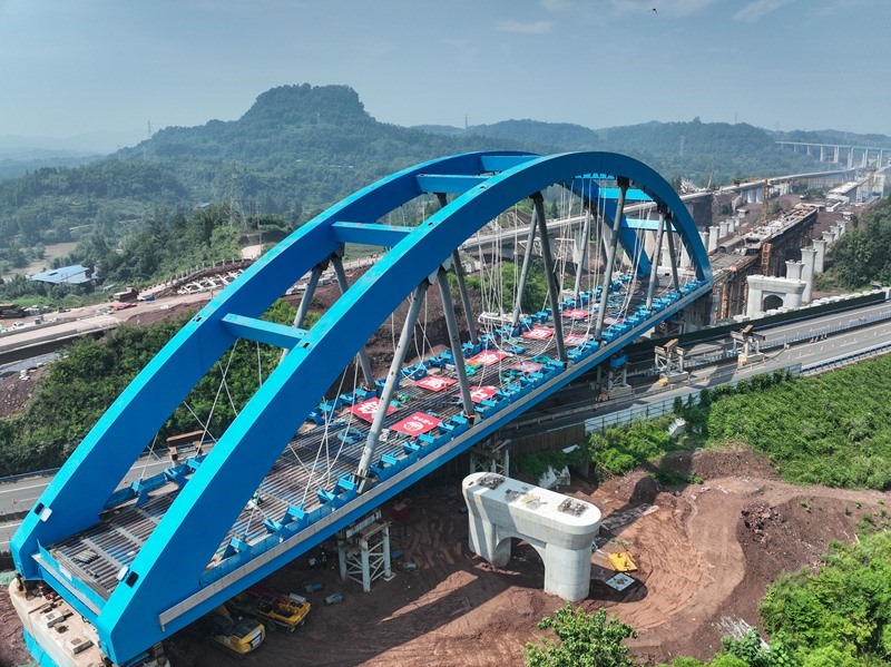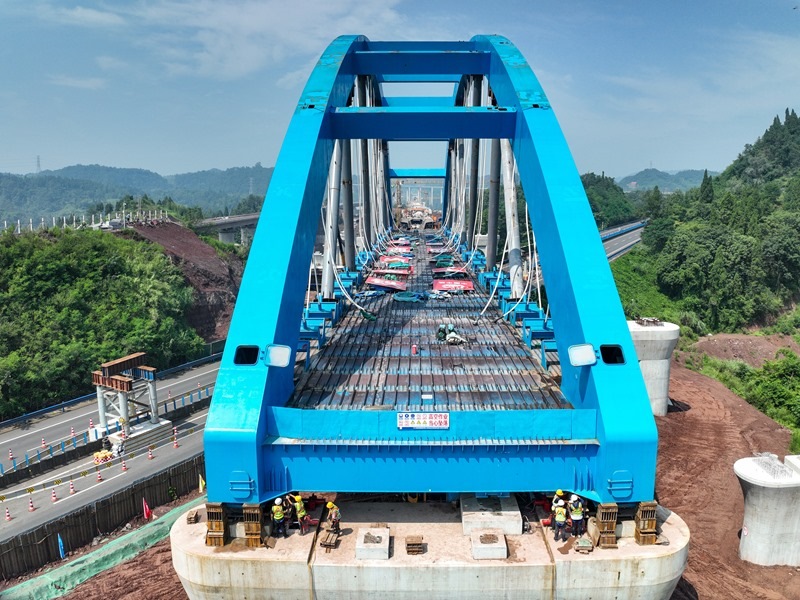 當(dāng)日,由中鐵四局承建的西渝高鐵跨營達(dá)高速公路大橋主體平穩(wěn)落在橋墩上,標(biāo)志著全國首座高鐵大跨度網(wǎng)狀吊桿系桿拱橋頂推施工完成,為全線按期通車奠定了堅(jiān)實(shí)基礎(chǔ)。